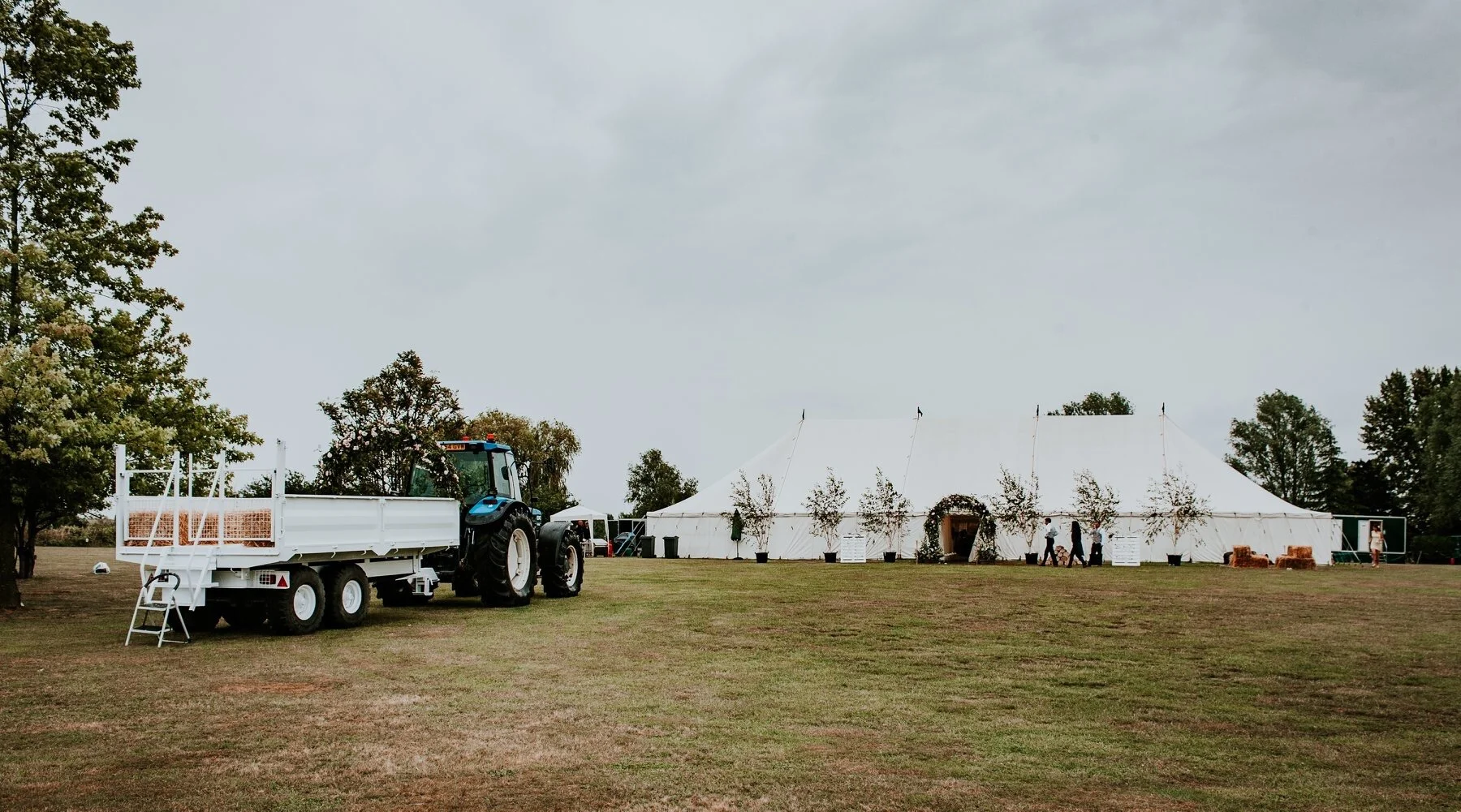Farm and nature elements created the foundations for the countryside-themed day - flower arches adorned the entrance to the marquee, while floral displays dressed the trailer attached to the unique transport - a tractor! And her dad’s profession certainly didn’t go unmissed: with a wooden post box, centre pieces and table plan featuring in the decor.