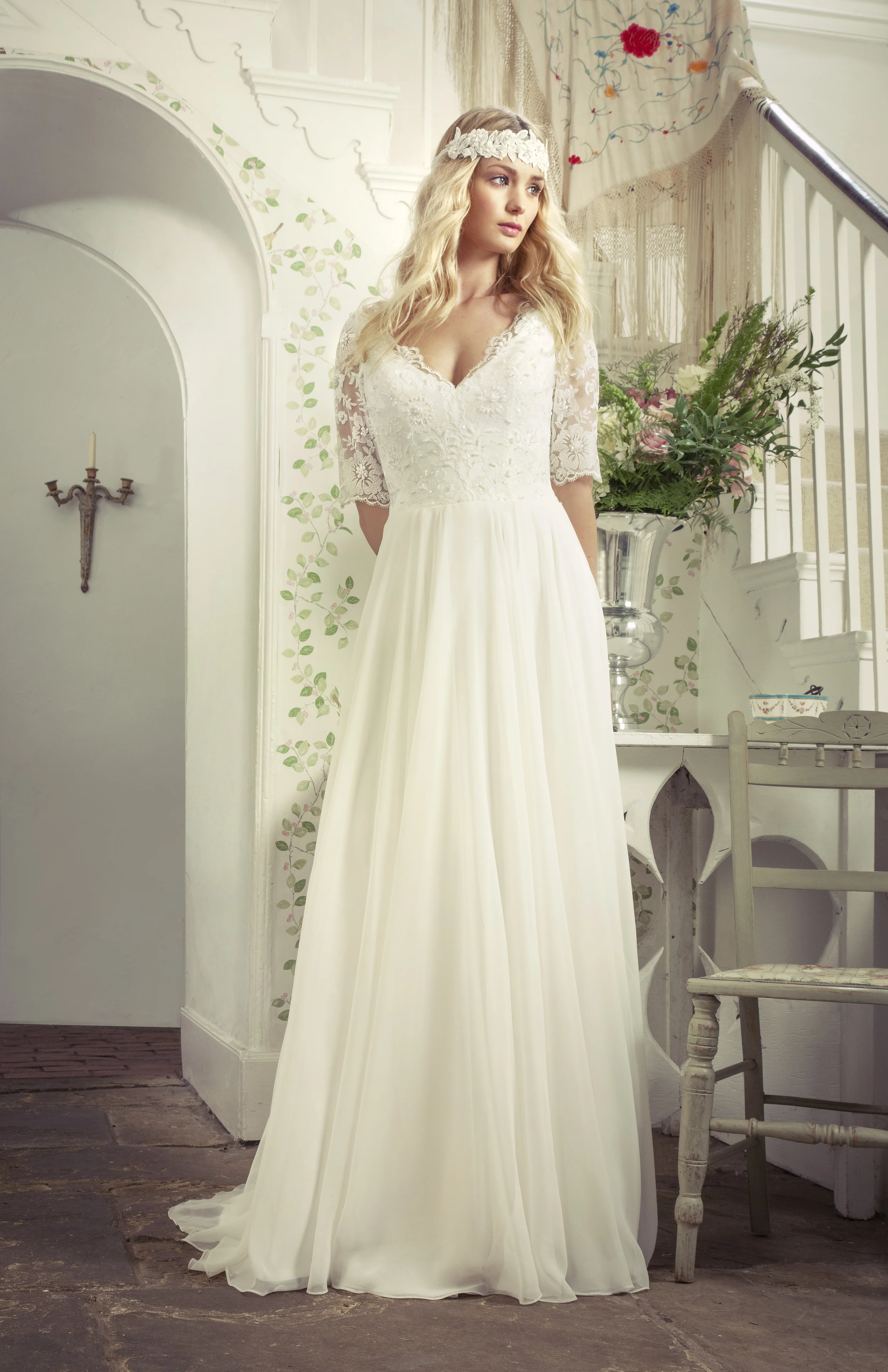 The collection is produced in the Uk using a beautiful range of fabrics. They are beautifully cut and I can see these dresses being passed on as heirloom pieces down to the quality of them. By adding the additions you are able to tailor a gorgeous dress to suit you and your figure.