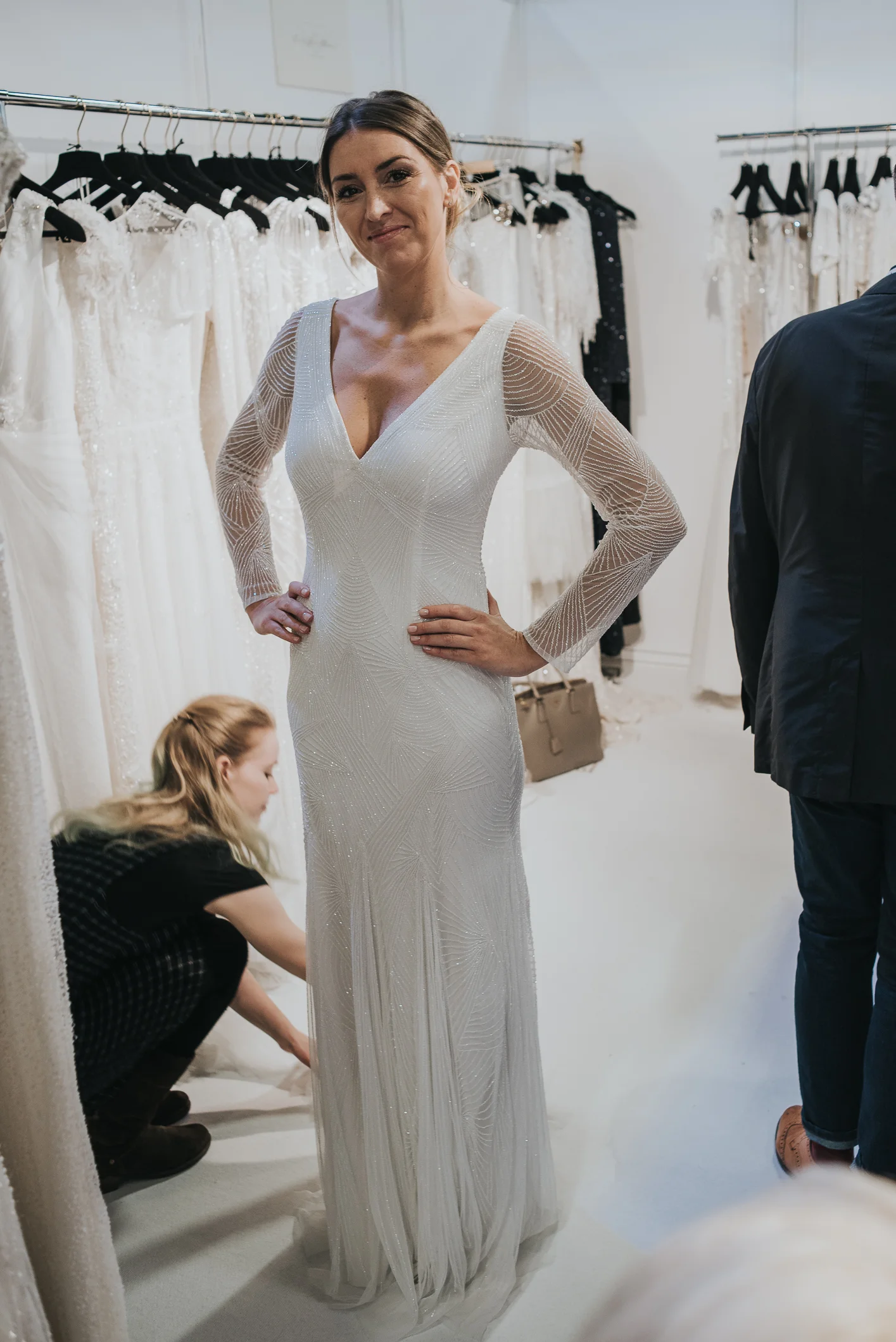 4) Taking pictures - this one is always a sticky point. Whilst we wouldn't stop anyone taking pictures we would strongly recommend that you don't. The lighting in the shop is not made for photos on phones and quite often it is not very flattering. Also, the dress is not fitted to you yet so you will not be seeing a true reflection of the dress. Instead, try to take a mental picture and you need to concentrate on how you feel when you are wearing it.